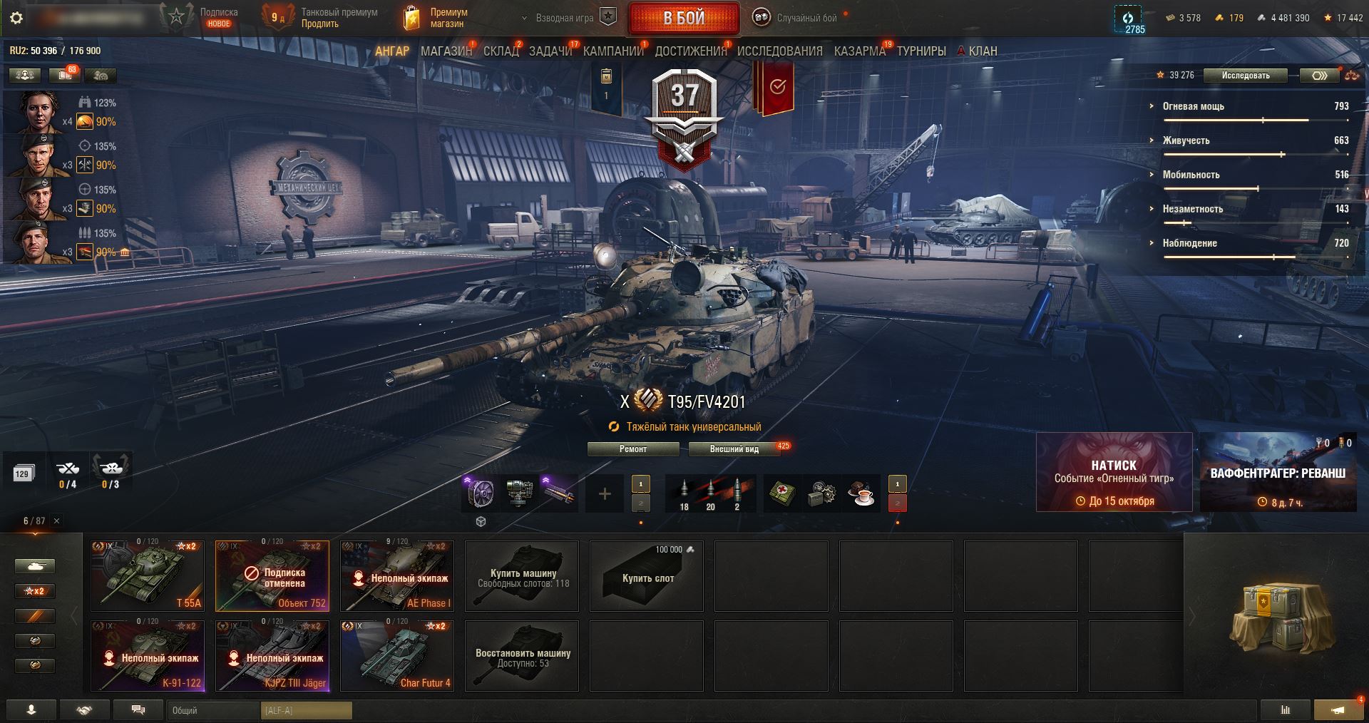 Личный аккаунт с T95/FV4201 Chieftain в ангаре