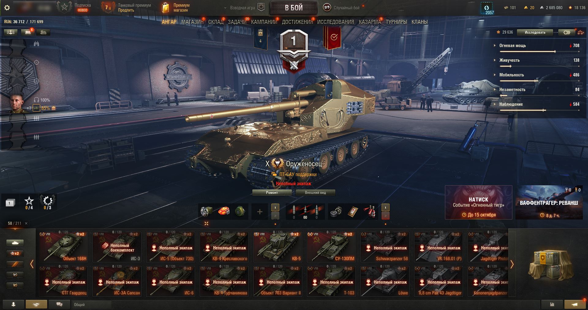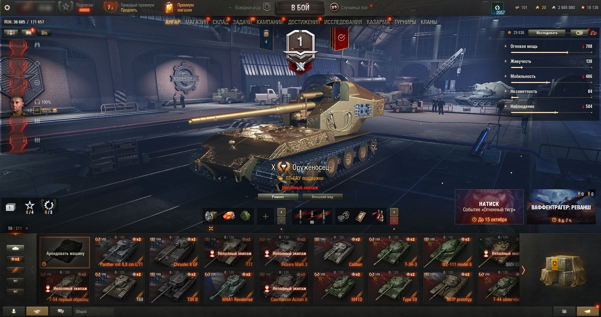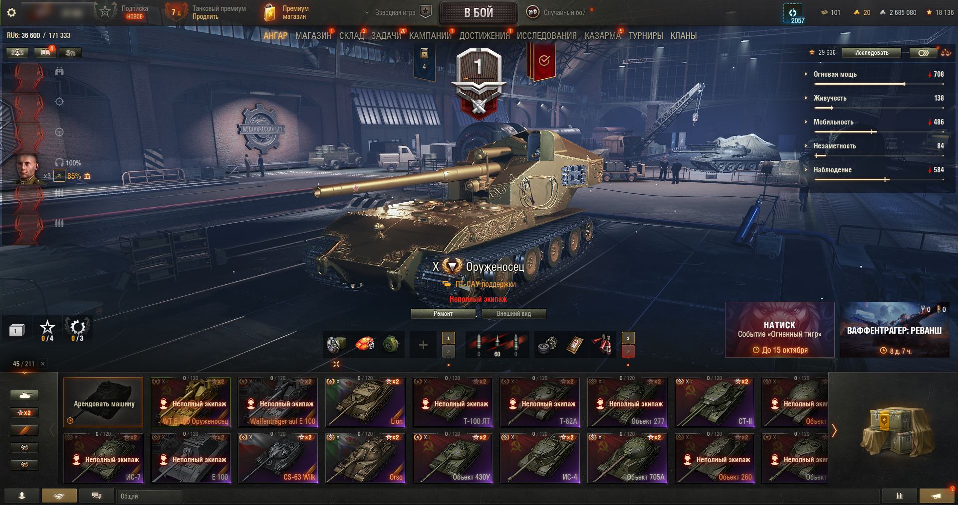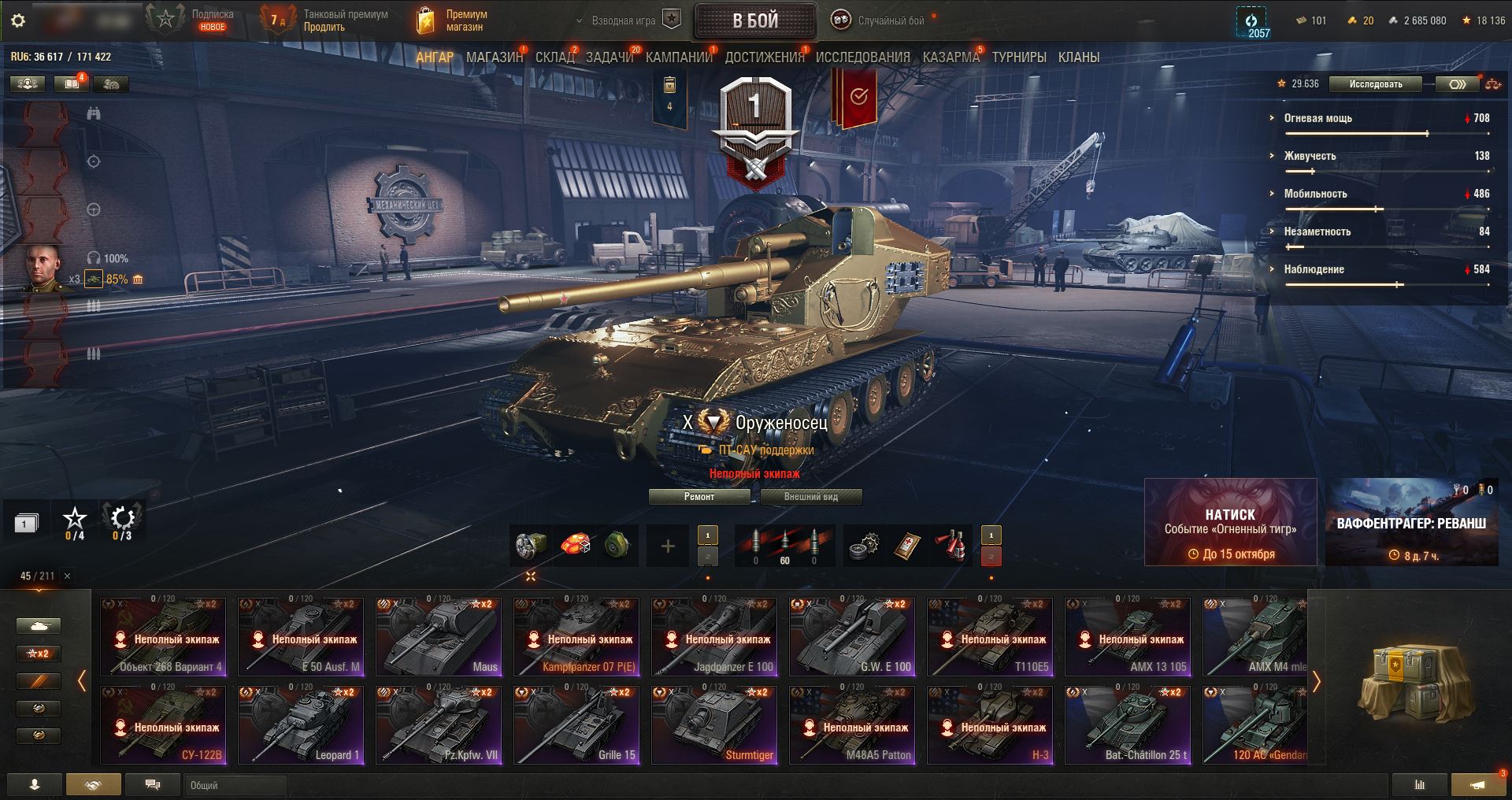 Личный аккаунт WoT 45 топов + WT E 100 Оруженосец