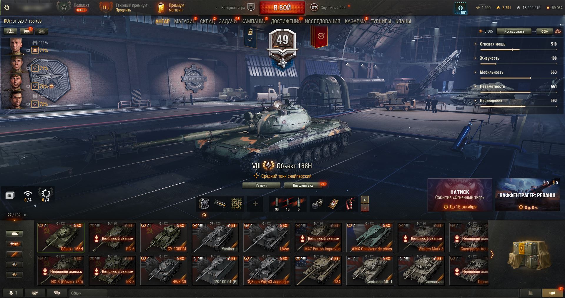 Личный аккаунт WoT 20 топов